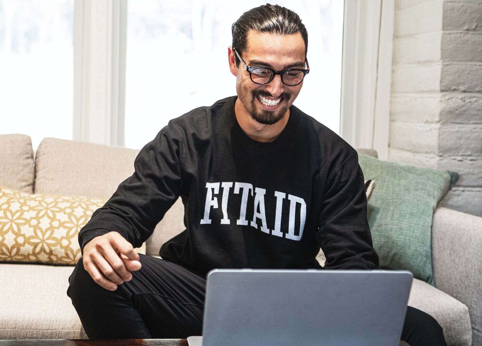 In the school of life, when it comes to fitness, FITAID University would definitely be the place to go (if only it existed)! Now you can sport this comfy collegiate style T-shirt with pride, perfect for your next study or workout session. Unisex sizing. Female model is 5'5" and is wearing size S; and male model is 6' and is wearing size L.