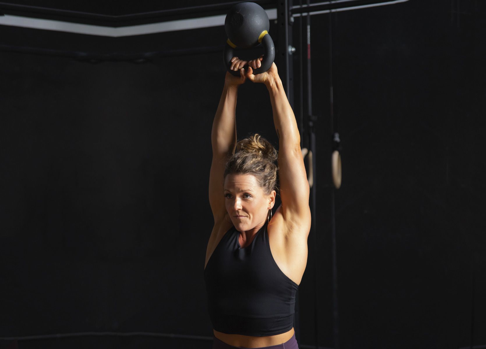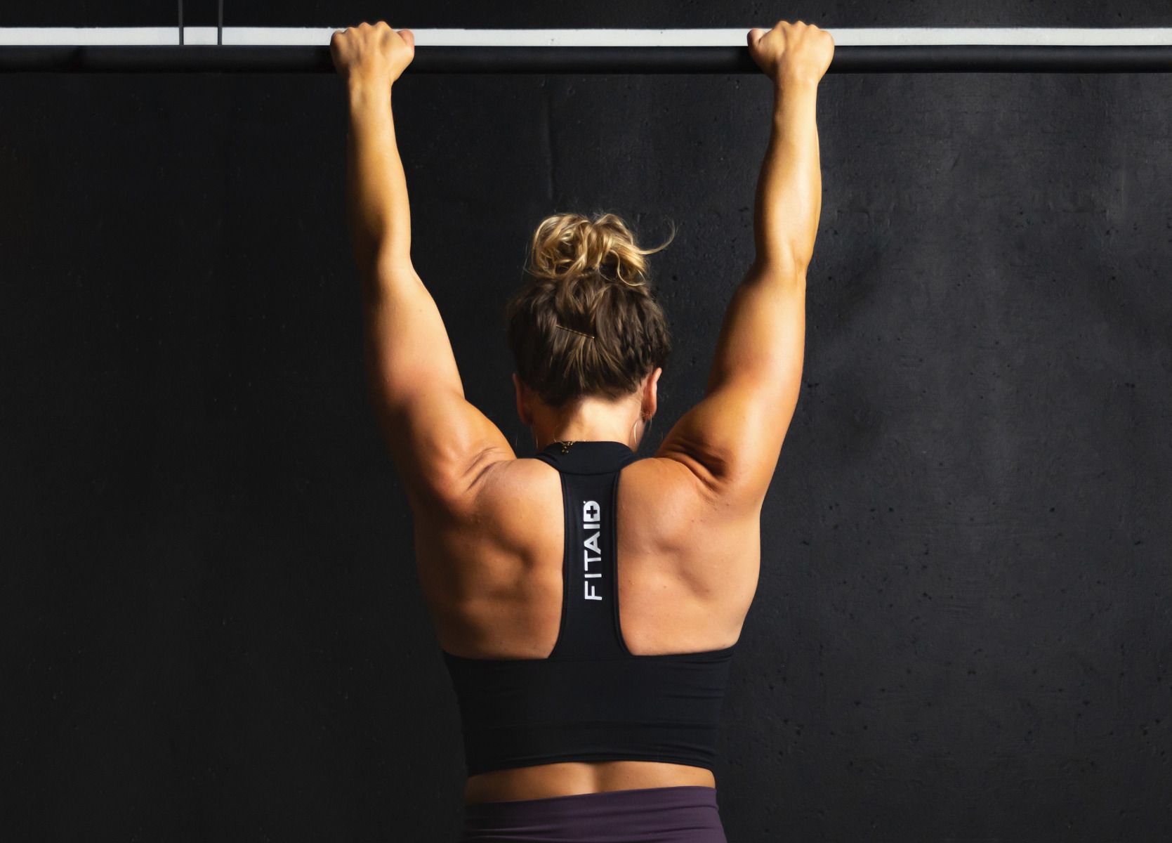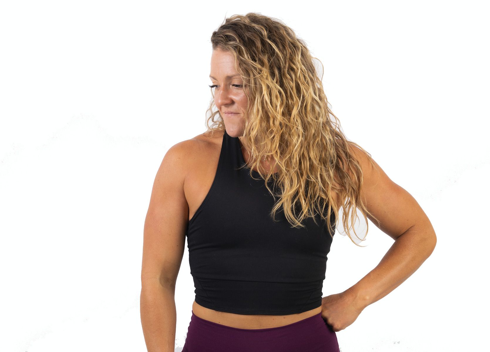 They're back and better in black! The perfect combination of function and fashion, this T-back sports bra features a high scuba-style neckline and wide supportive bra band for comfort and support—destined to become a staple in your gym bag. Model is 5'5" and is wearing size M.