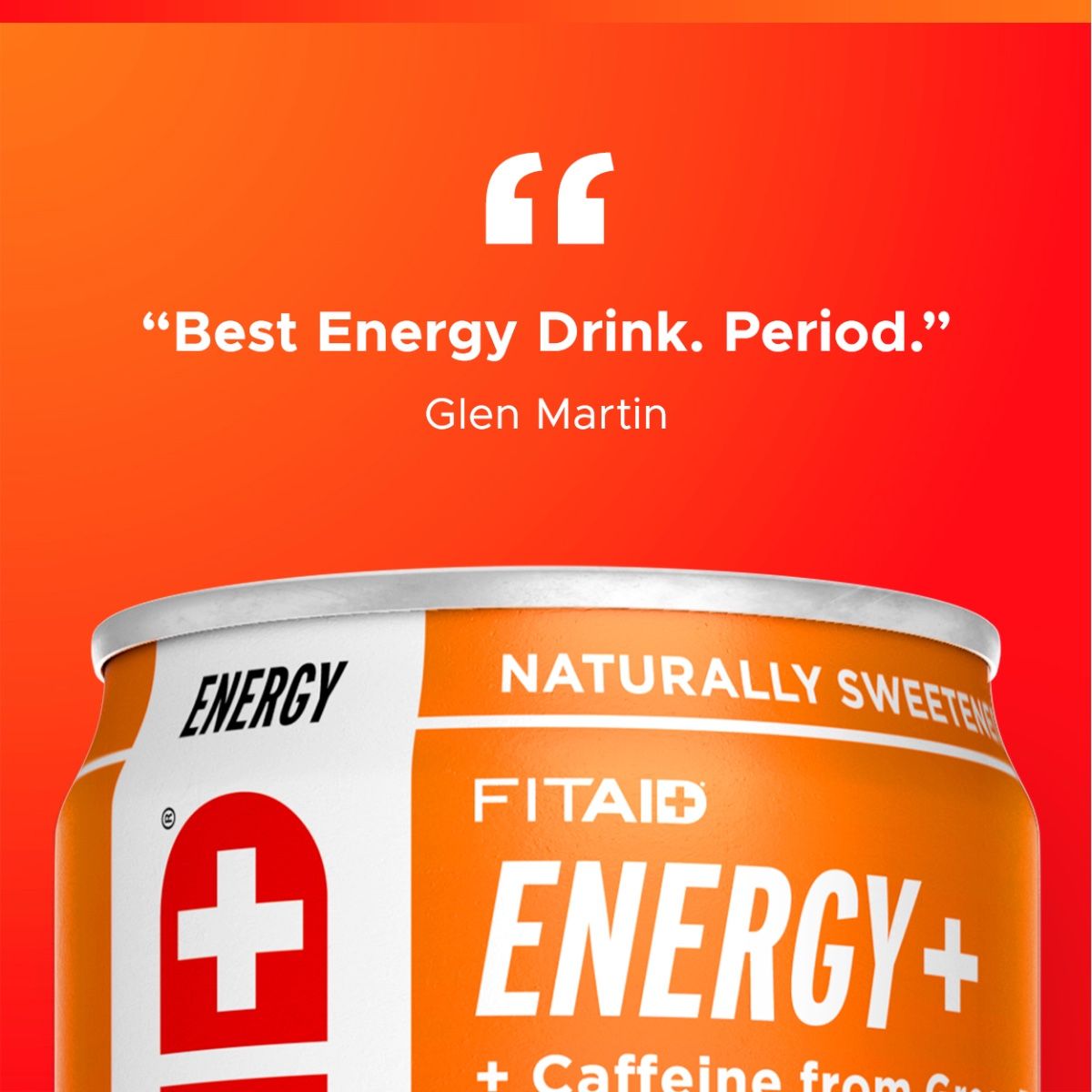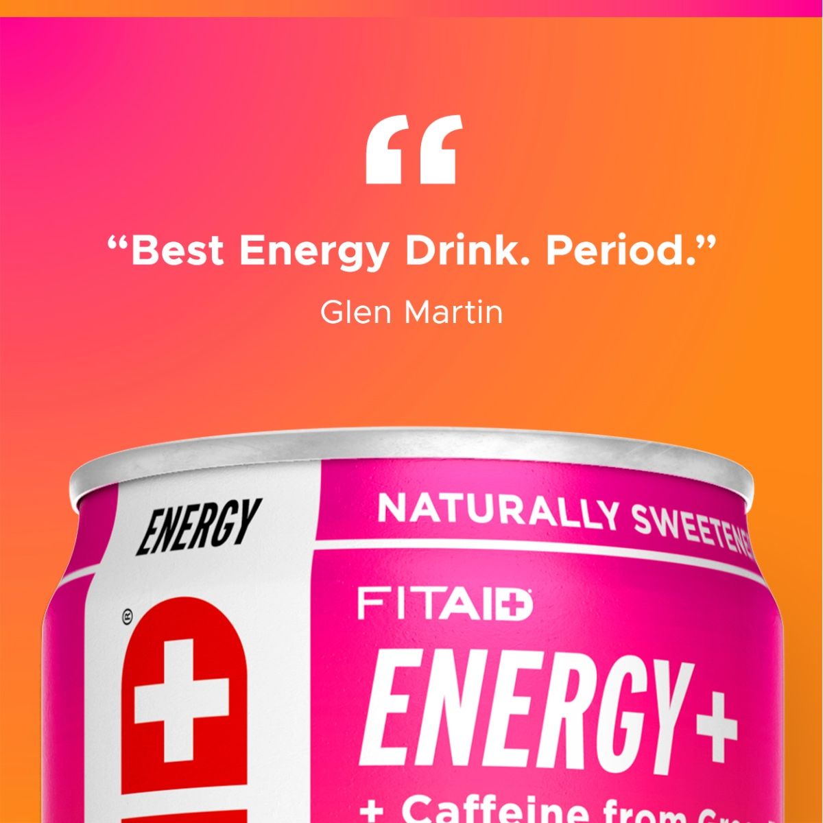FITAID Energy is a performance fitness energy drink boosted with 105mg of plant-sourced caffeine from green tea. It is naturally sweetened with no sucralose, no aspartame, and no compromises.