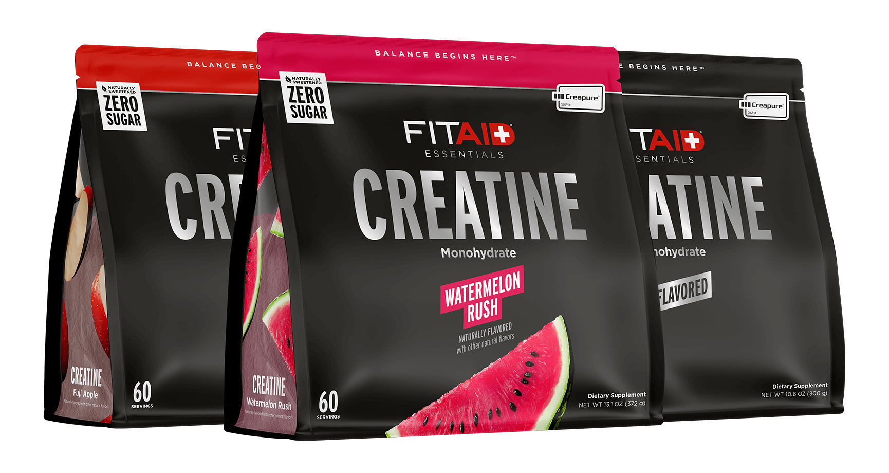 FITAID Creatine comes in three options: Unflavored, Watermelon Rush and Fuji Apple. Simply add a scoop to water, your smoothie or your favorite FITAID can to tap into all the benefits creatine has to offer.